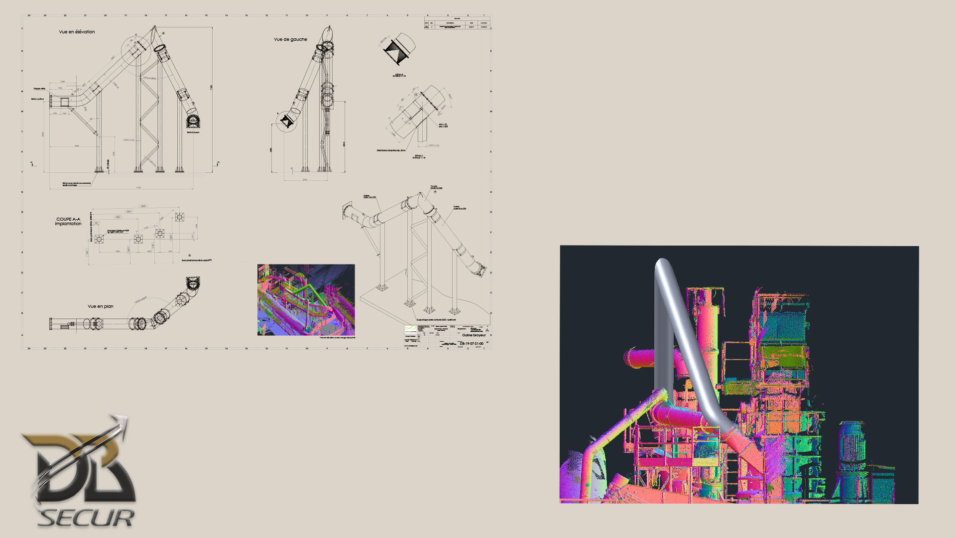 Comet Obourg Scan 3D Conception et modélisation sur scan 3D – Déviation gaine aspiration broyeur. Voir plus